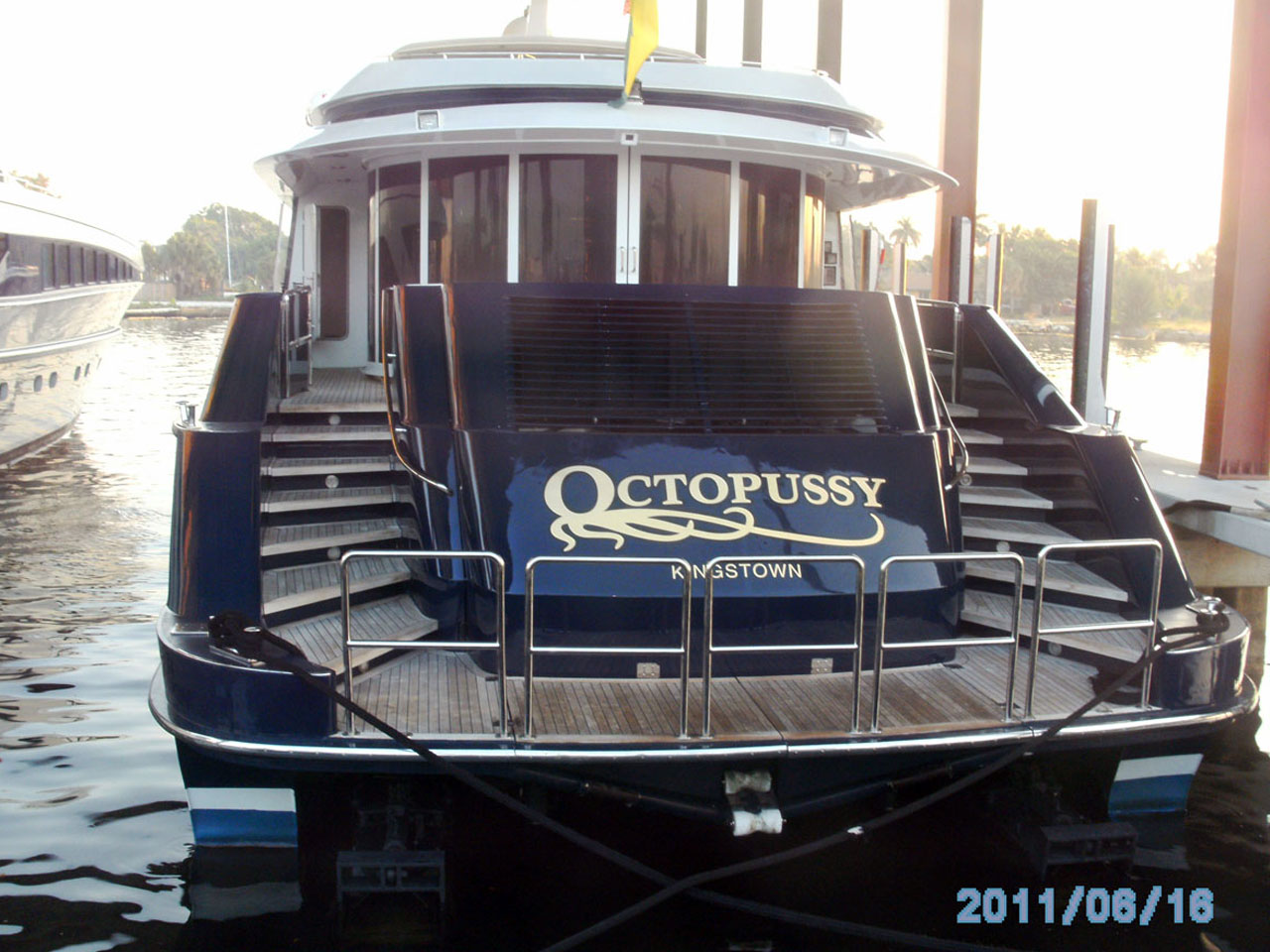 We have a long list of of jet driven vessels that have used our expertise and state of the art equipment and underwater LED lights and submersible torches to perform this precise and delicate underwater job including: 170' Swedeship M/Y Braveheart" (Ex M/Y Jefferson Beach") the 132' Heesen M/Y "Mirage" and the 169' Oceanfast M/Y "Mystique" at Derecktor of Florida Shipyard (not shown).